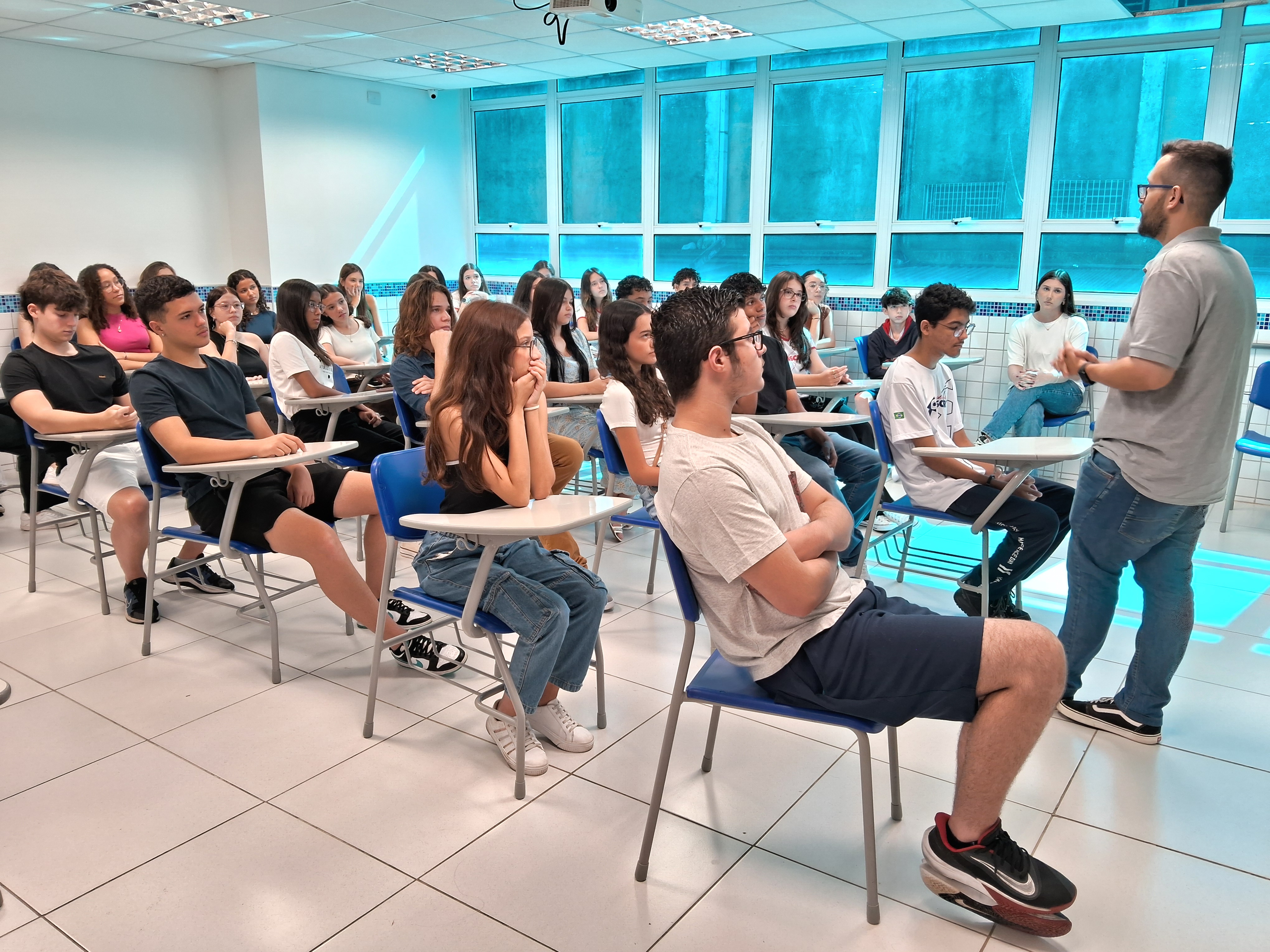 Ar condicionado em todas as salas do Ensino Fundamental e Médio.