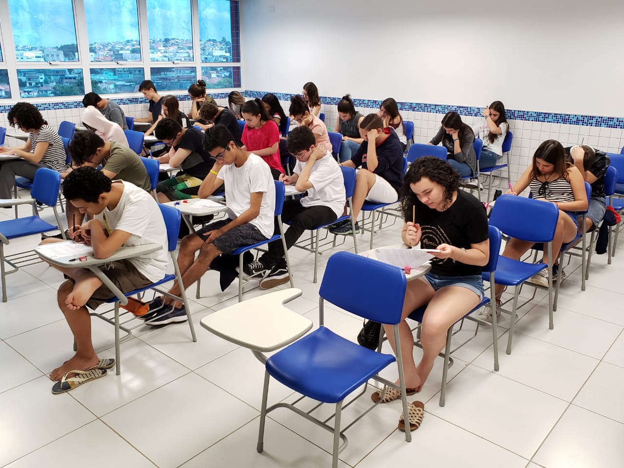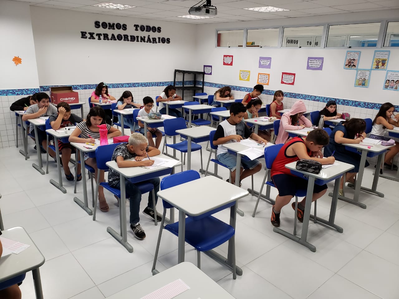 Ar condicionado em todas as salas do Ensino Fundamental e Médio.