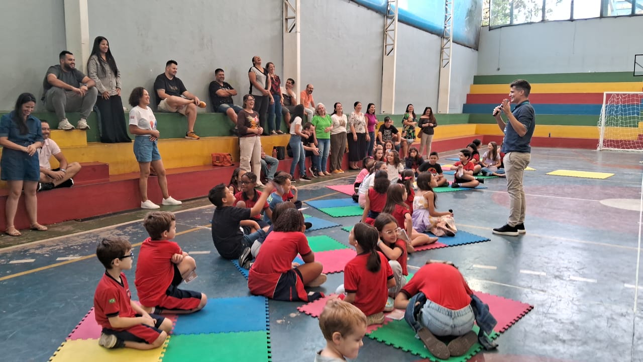 A tarde foi ainda mais especial com a presença do autor Léo Cunha, que encantou a todos com suas histórias e uma animada sessão de autógrafos. Em seguida, tivemos a honra de receber Lucas Buchile, representante da editora Maralto, que compartilhou valiosas reflexões sobre a importância de cultivar o amor pela leitura entre pais e alunos.