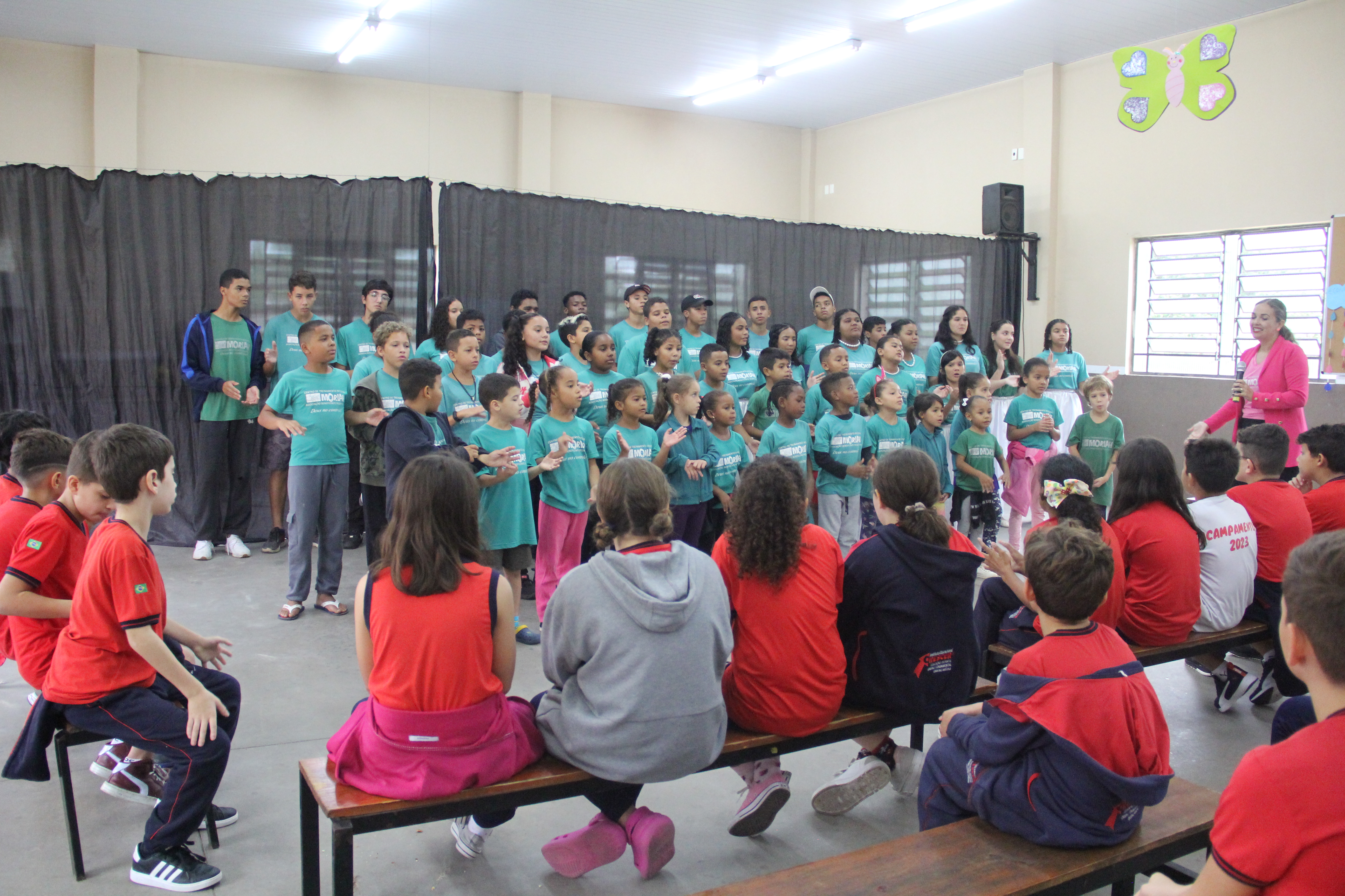 Mas as boas notícias não param por aí! Além de sua generosa contribuição, os alunos do 5º Ano C dedicaram toda a manhã para interagir e se divertir com as crianças do Instituto Moriah. Entre partidas animadas de vôlei, futebol e diversas outras atividades recreativas, eles compartilharam risadas, sorrisos e momentos inesquecíveis.